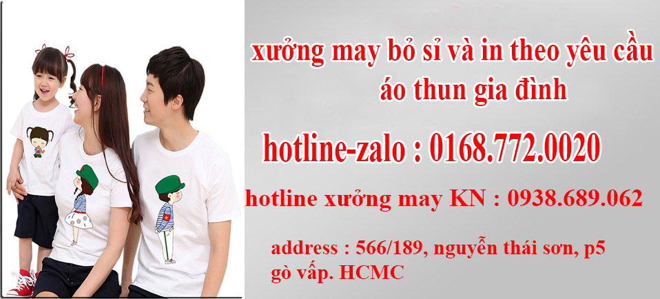 xưởng áo thun gia đình nhận thiết kế, may và in tất cả các loại áo gia đình trong thời gian nhanh nhất, giá cả hợp lý với cam kết về chất lượng và dịch vụ.